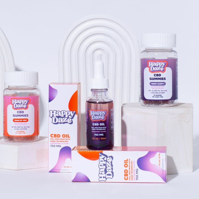 An Overview of My Work with Happy Daze: A Range of Media Showcasing Their CBD Brand.
